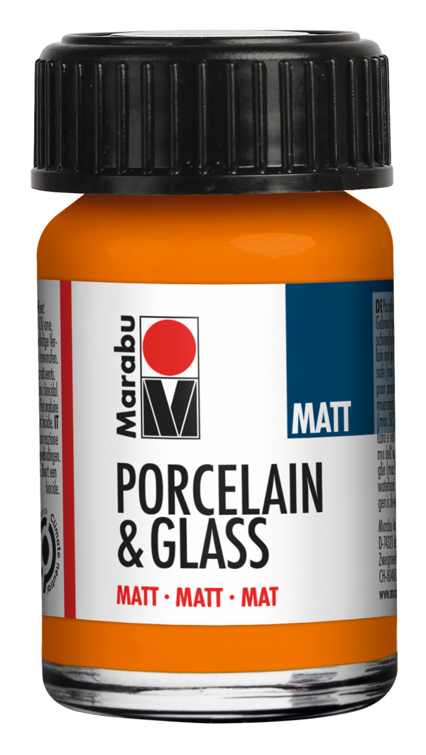 Matná krycí barva na vodní bázi na porcelán a sklo. 013-orange. Obsah: 15 ml. Použití na materiál: sklo, porcelán, keramika, akrylát